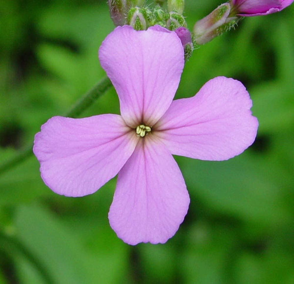 Hesperis matronalis is an herbaceous plant species in the family Brassicaceae. It has numerous common names, including dame's rocket, damask-violet, dame's-violet, dames-wort, dame's gilliflower, night-scented gilliflower, and more! Technically speaking, it’s a tender perennial or a biennial. This species survives usually for two years. In its first year, it develops its structure and foliage, its roots spreading out beneath the soil. But in its second year it begins to bloom, and it easily self-sows during that year. Any plants that survive for a third year will also be able to bloom.