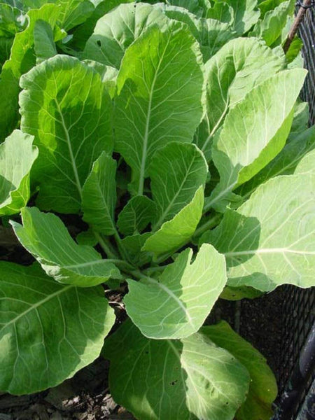 Vates' is a popular non-heading, slow-bolting collard with large blue-green leaves on 32" tall plants. Produces high quality frost-resistant greens especially suited to the Mid-Atlantic region and southern areas. Like kale, collards are non-head forming cabbages. Collards and kale are quite similar genetically, but breeding and cultivating over the years has produced plants with different textures and flavor. Collard leaves are smooth and almost waxy, with pronounced veining. They are quite large, with a bright to dark green color, and the stems are very fibrous and tough. Collards also tend to have a stronger and more bitter flavor than kale.
